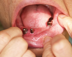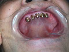 歯科大学や著名な歯科医にて色々治療をされていて、最初口の中を診たところは、上歯は総義歯で顎堤は十分あり、下歯の前歯は残っていたことから、全く問題なく対応できると考えました。