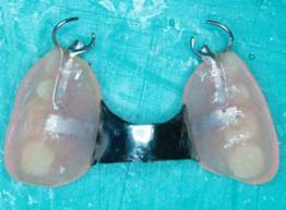 上顎骨の発育が悪くしかも顎提がおわん型をしているため口をあけるとはずれ落ちてくるケースです。