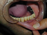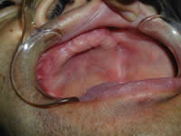 口の中が乾燥して唾液が出ない患者さん(ドライマウス)のケースは吸着しにくいです、顎の状態が良ければよいのですが上顎で悪いと困難なケースがよくあります。とくに入れ歯をいれるとえずくので顎の部分を狭くするように希望される患者さんの場合です。